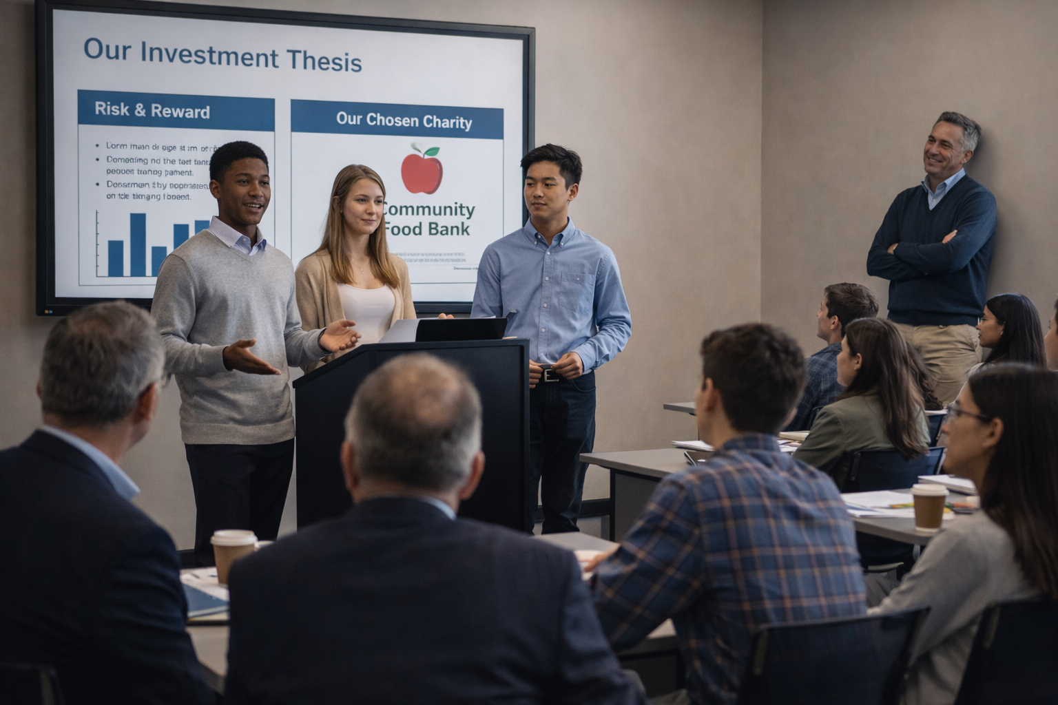 The program culminates in action. Capital is deployed and directed toward a selected charitable cause, turning analysis and decision-making into tangible impact. Students see the full arc — from idea to outcome — and experience what it means to give thoughtfully rather than reactively.